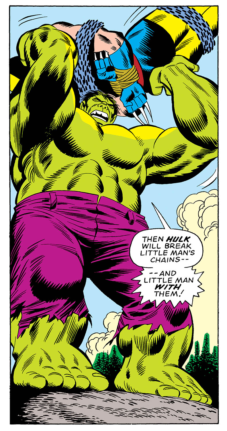 In #181, Hulk and Wolverine battle throughout the forest - taking a brief reprieve to put down the Wendigo together - and the Hulk ultimately lands a glancing blow that knocks Wolverine out.