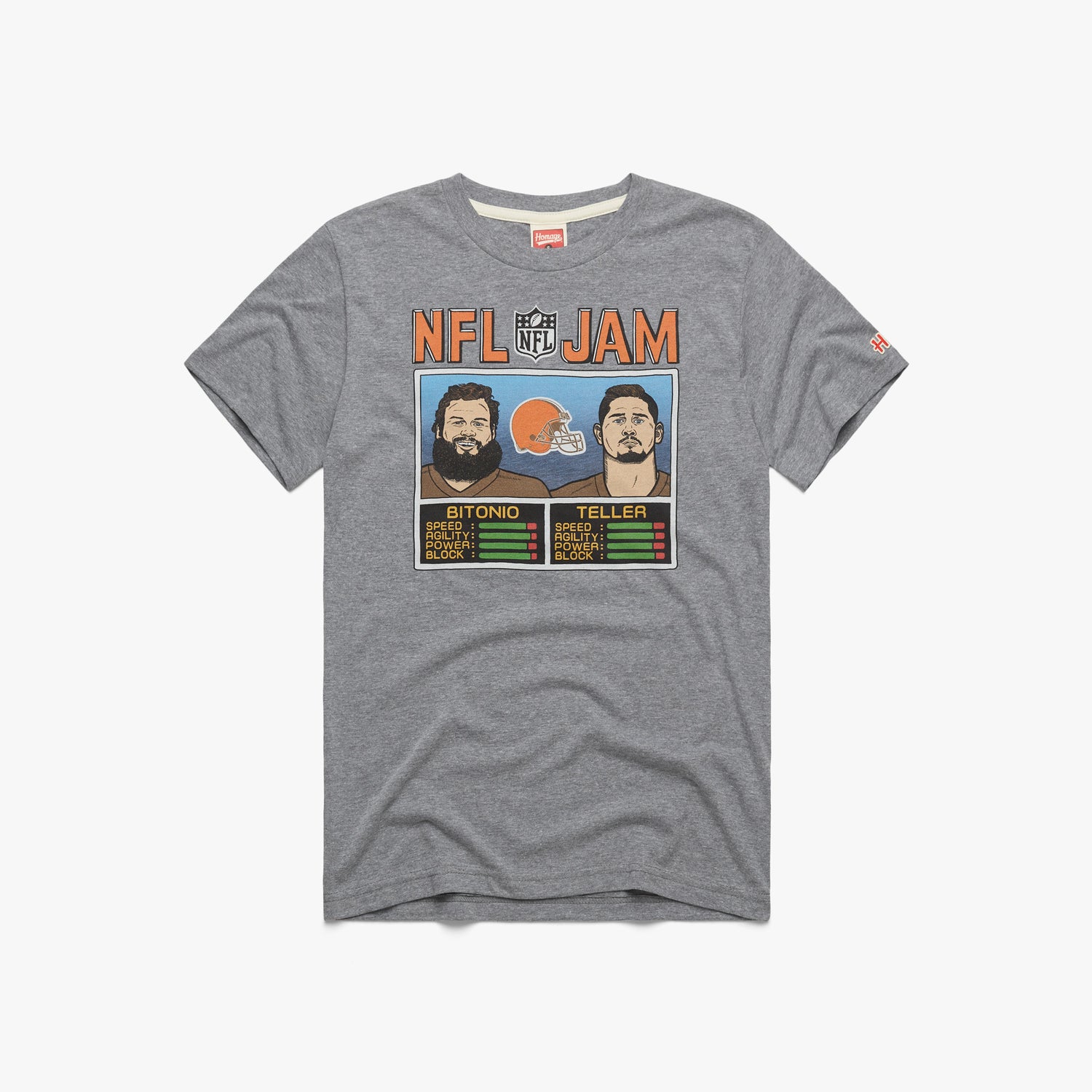 Boomshakalaka! NFL Jam is here! Rep your favorite Cleveland Browns duo with a super-soft tee for Joel Bitonio and Wyatt Teller, and let’s get ready for some football. They’re on fire!