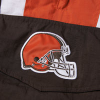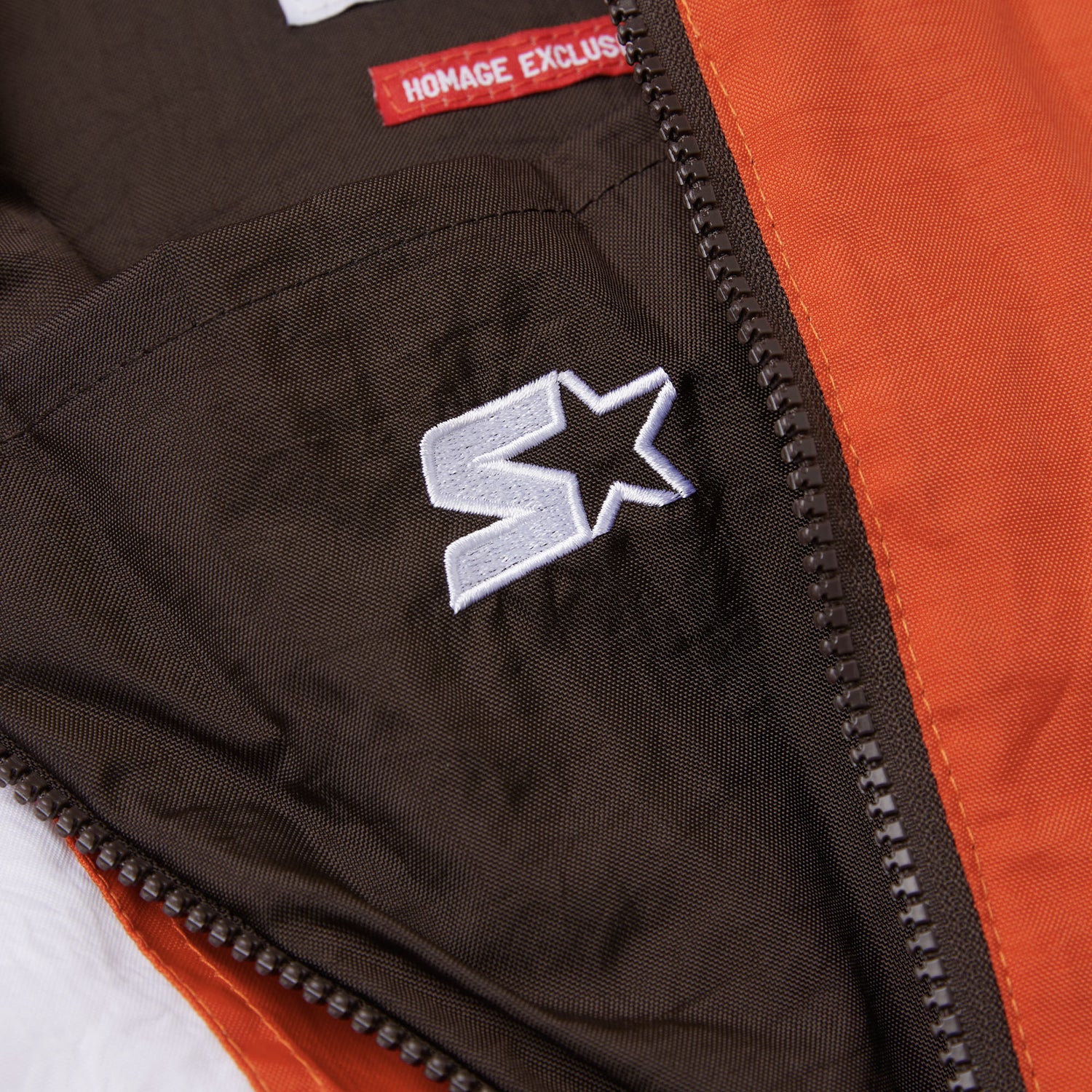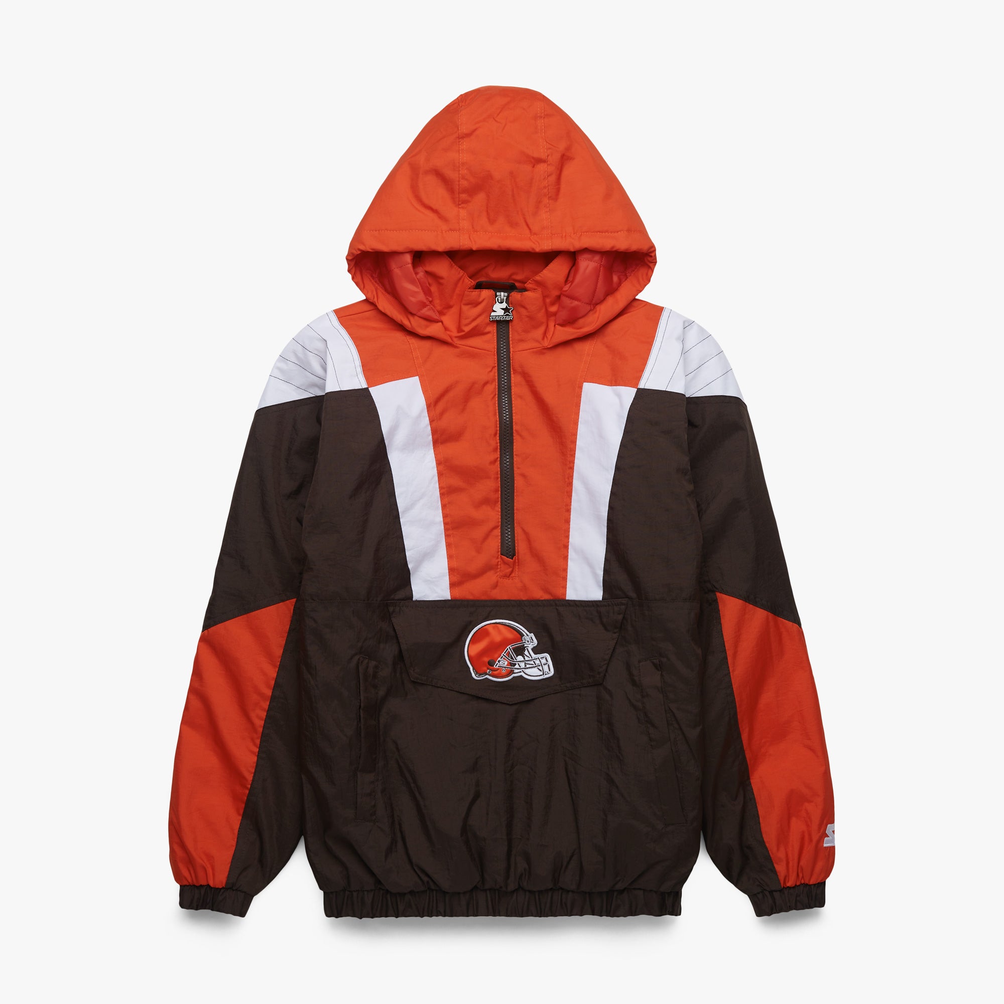 The ultimate in game day outerwear: the HOMAGE x Starter NFL Pullover Jacket. Half-zip collar, adjustable hood, classic kangaroo pocket with velcro and zip closure, and bold team colors for your one and only Cleveland Browns: it’s a certified essential.